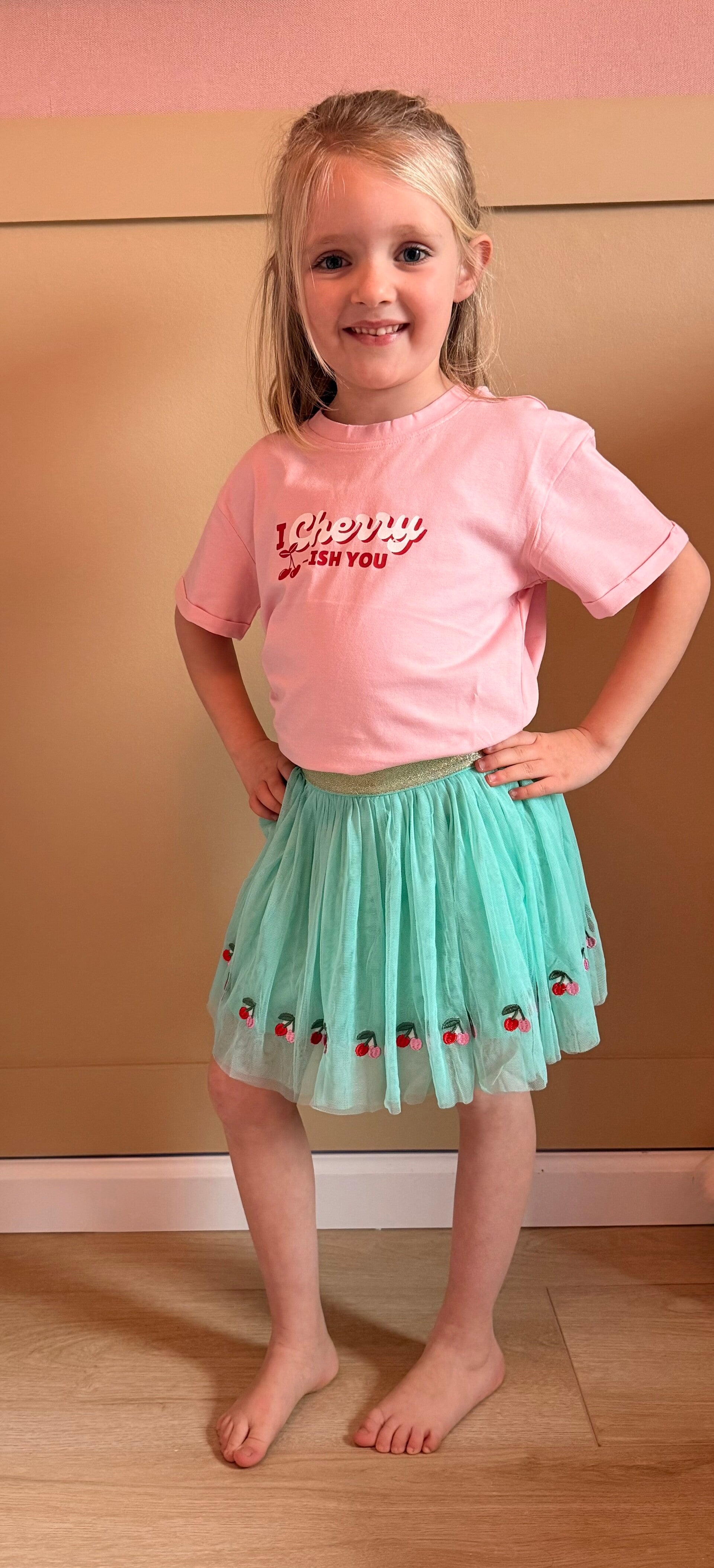 Roze t-shirt met kersen