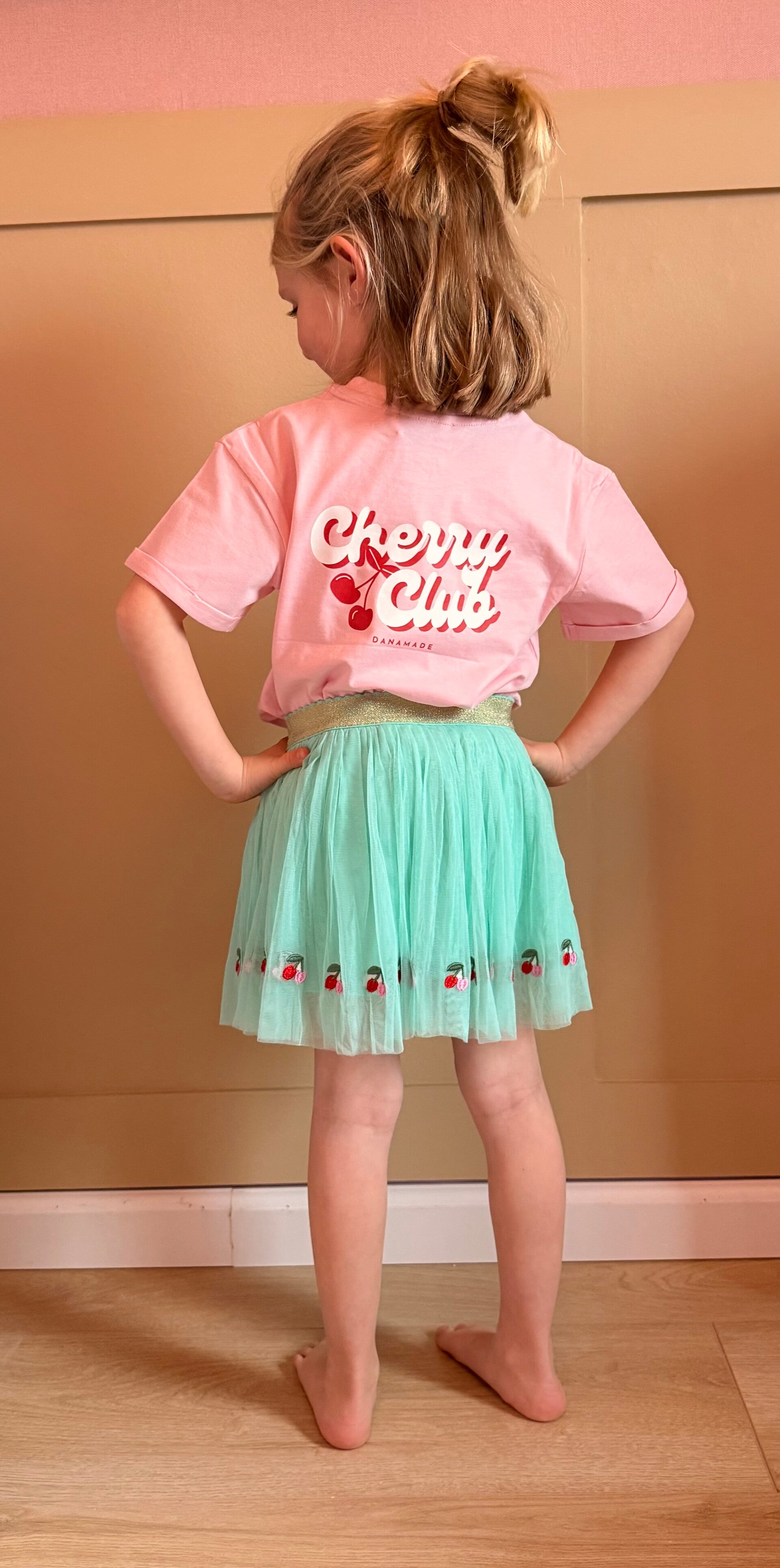 Muntkleurig rokje met onderaan kersjes