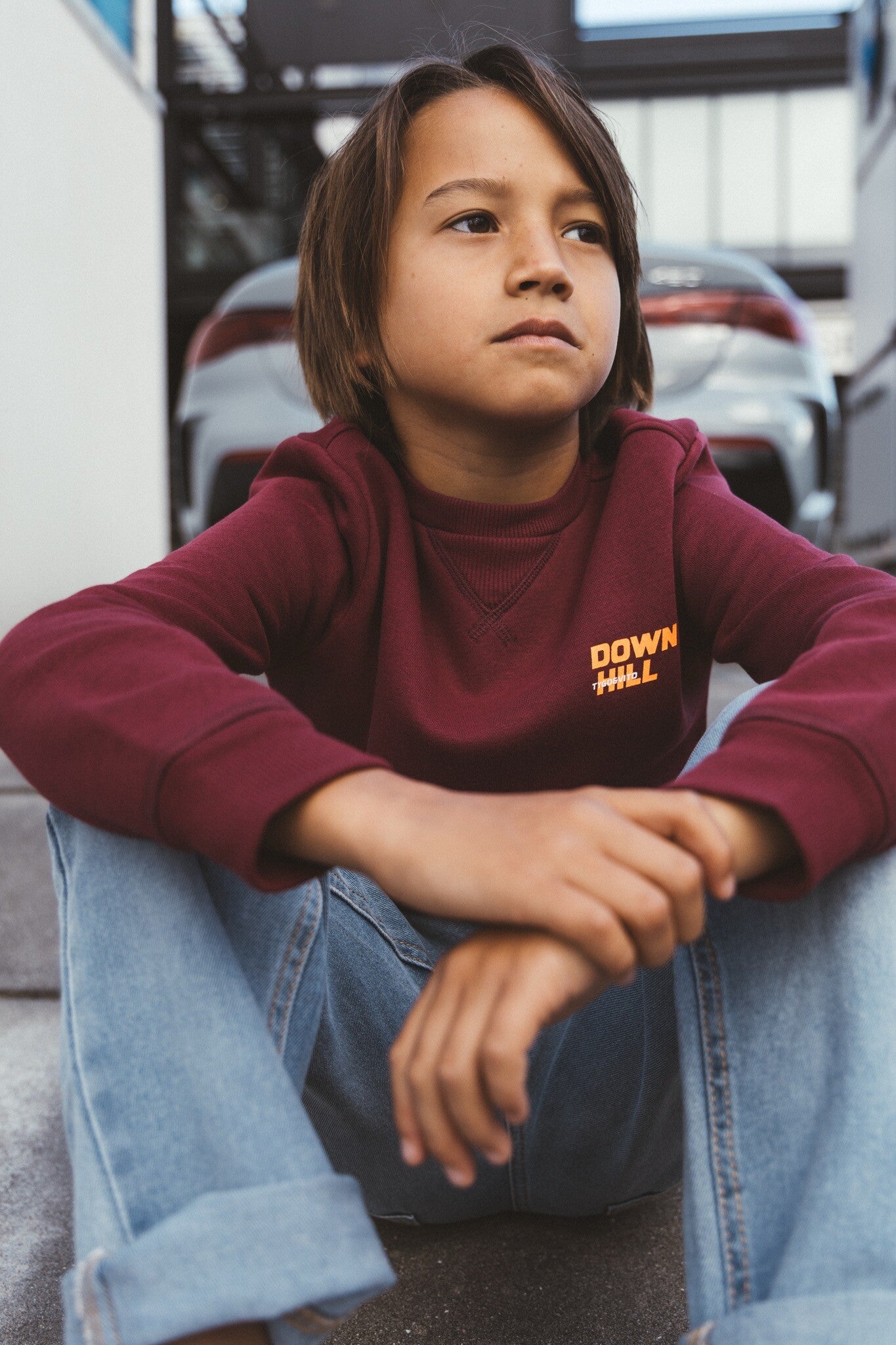 Bordeaux achtige sweater down hill