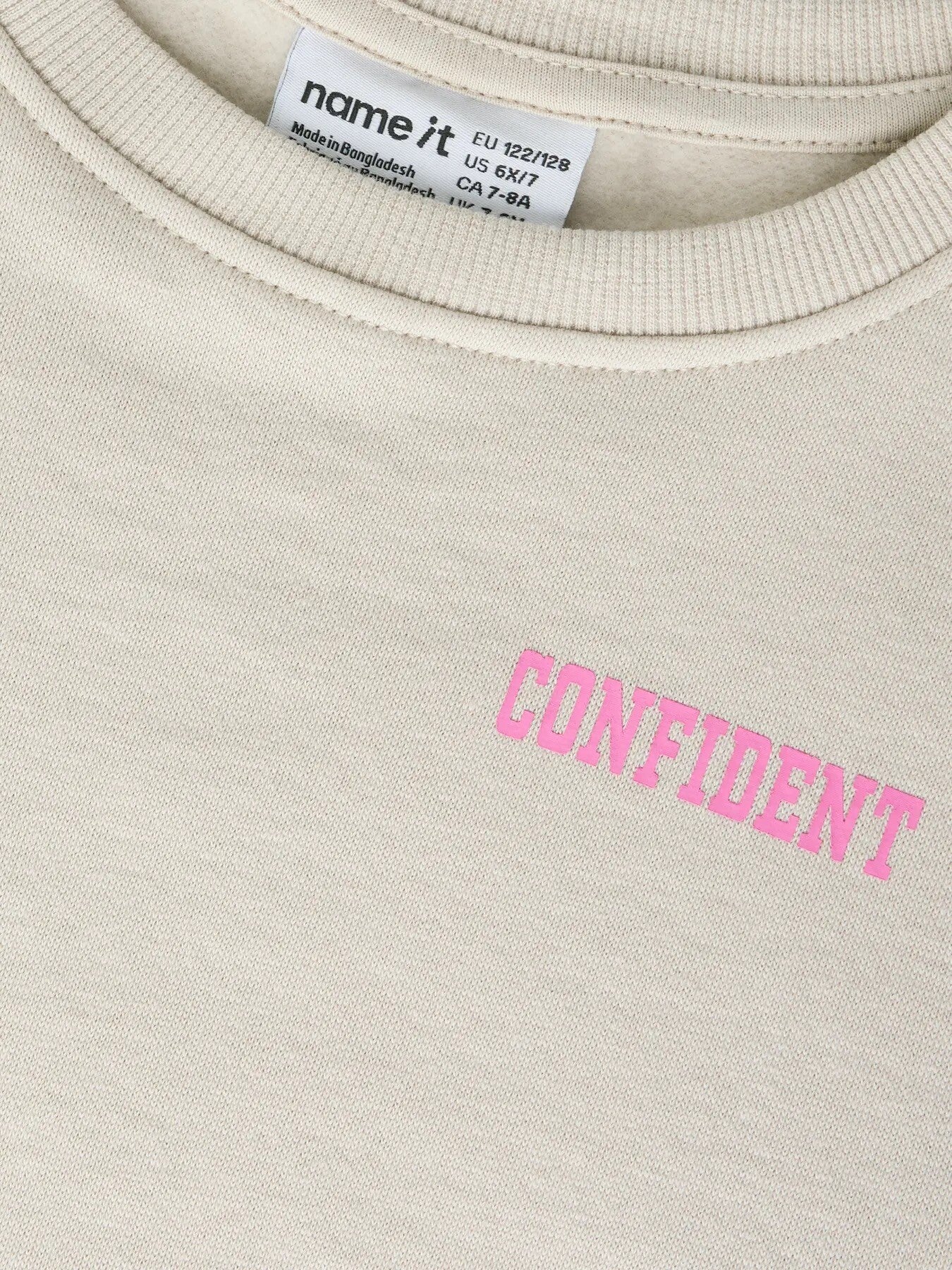 zandkleurige sweater met confident op