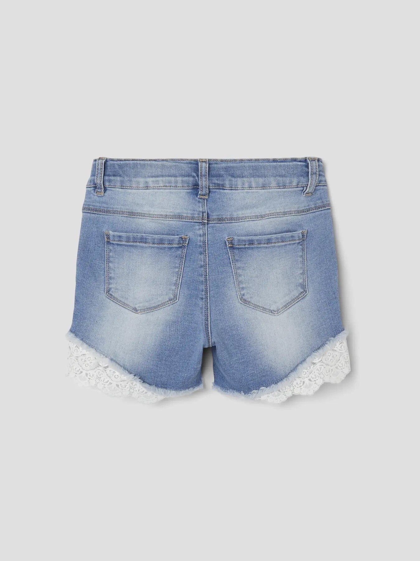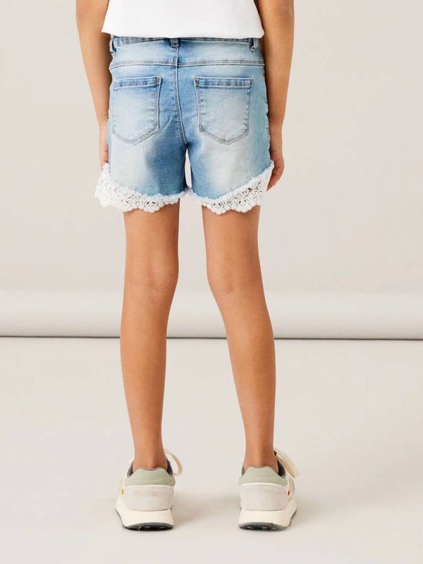 Jeansshort met wit kanten boordje onderaan