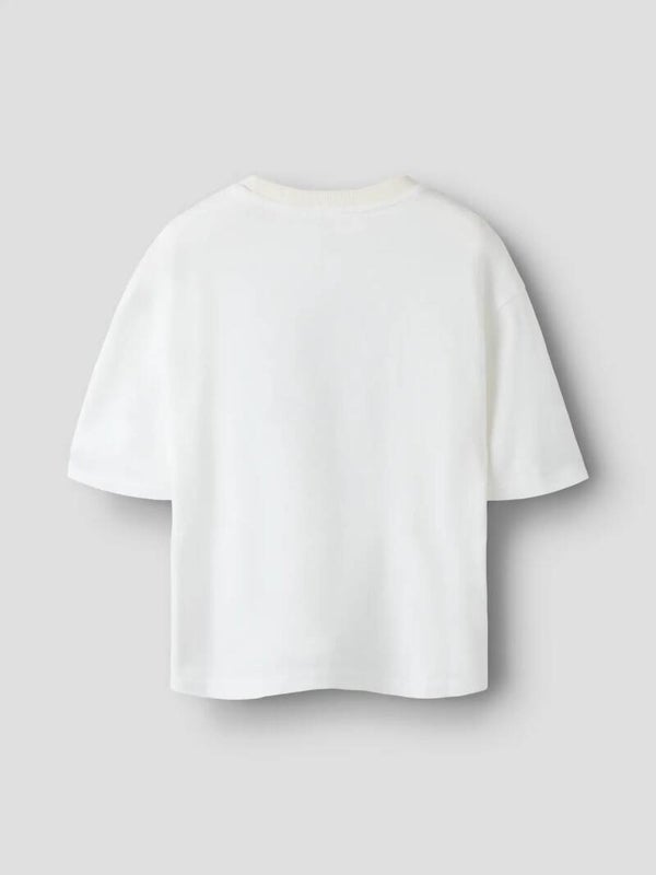 Witte t-shirt met tekstvak find me by the sea